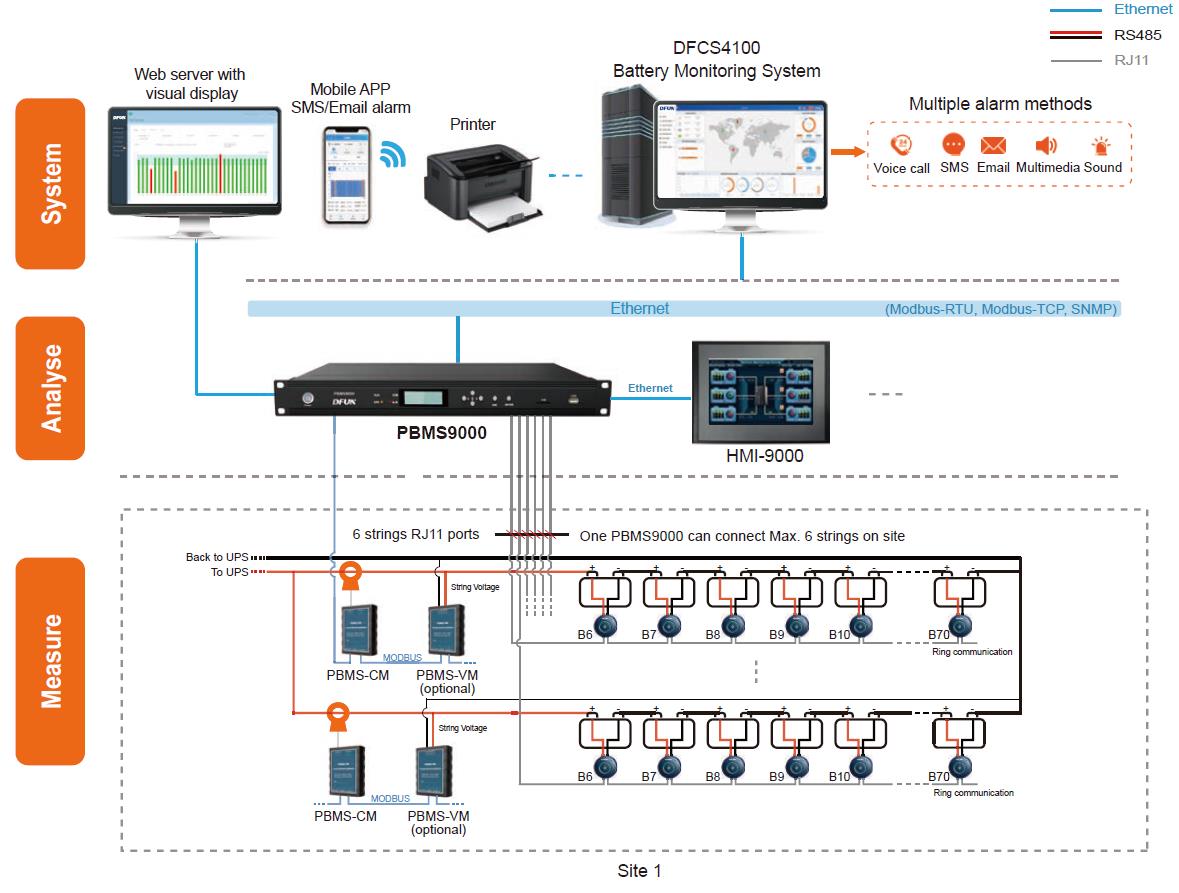 PBMS6000 PRO adopta una estructura distribuida 'un sensor para una batería', monitoreo en línea en tiempo real las 24 horas, detección oportuna y precisa de celdas deshabilitadas, alerta temprana y eliminación de riesgos de seguridad.